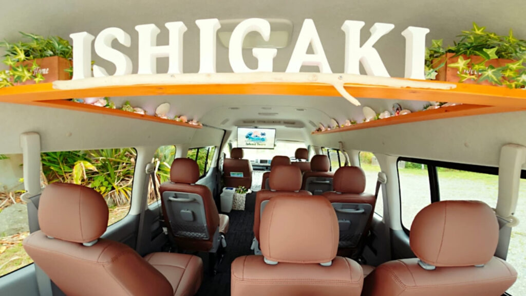 Inside the vehicle, we’ve added a special touch — a built-in monitor where you can watch our original videos about Ishigaki’s nature, culture, and history as you travel between locations.